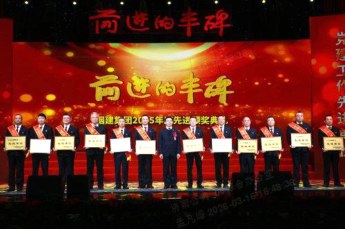 唐波董事長指出,2025年行業(yè)市場寒意肆虐,企業(yè)生存壓力空前,在市住建局的堅強領導下,集團錨定發(fā)展目標,以強力舉措狠抓市場經(jīng)營與清收防欠,以實際行動確保企業(yè)效益與品質(zhì)提升,在逆境中站穩(wěn)腳跟、穩(wěn)步前行。過去的一年,集團公司連續(xù)13年獲得“ENR全球承包商250強”“ENR國際承包商250強”,獲得國家級市政工程最高質(zhì)量評價、華東地區(qū)優(yōu)質(zhì)工程、華東地區(qū)優(yōu)質(zhì)安裝工程等多項行業(yè)大獎,獲評“工程建設誠信典型企業(yè)”等榮譽,這些來之不易的成績和榮譽,已經(jīng)深深地打上了煙建人攻堅克難的烙印,寫滿了煙建人的堅守和不易,是全體煙建人堅守初心、迎難而上的成果,必將在集團發(fā)展歷史上留下極不平凡的一頁。2026年是集團“十五五”規(guī)劃的開局之年,更是順勢而為、感恩奮進、精益管理、提質(zhì)增效的關鍵之年。集團上下要清醒認識行業(yè)變局,精準把握發(fā)展機遇,統(tǒng)一思想、堅定信心,以集團“12345”總體發(fā)展思路為根本遵循,牢牢守住“有質(zhì)量地活下去”這一根本任務,持續(xù)深化“清收防欠年”活動,以釘釘子精神抓緊抓實抓好保流動、保經(jīng)營、保效益、提品質(zhì)、促發(fā)展這五項事關企業(yè)前途命運的關鍵工作,不斷增強企業(yè)發(fā)展的韌性與活力,全力迎戰(zhàn)行業(yè)挑戰(zhàn),確保完成全年各項目標任務,實現(xiàn)“十五五”發(fā)展開門紅。唐波董事長要求,大家要珍惜榮譽,把表彰作為新的起點,再接再厲、再創(chuàng)佳績,持續(xù)踐行煙建“感恩、責任、執(zhí)行”的核心文化,充分發(fā)揮示范帶頭作用,以實際行動帶動身邊更多同事奮勇爭先。同時,集團總部各部門、基層各單位要以先進為標桿,廣泛宣傳先進事跡、弘揚先進精神,引導全體員工對標先進、學習先進、爭當先進,讓感恩成為自覺、讓責任扛在肩頭、讓執(zhí)行落到實處,凝聚起推動集團發(fā)展的磅礴合力。